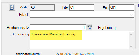 | markierte Pos. korrigieren | Erläuterung, Raum, Zeilentext oder Bemerkung für die markierte(n) Position(en) setzen |
