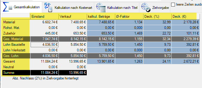 Auch im Bereich der Lohnstunden sind diese Kalkulationsmöglichkeiten vorhanden.