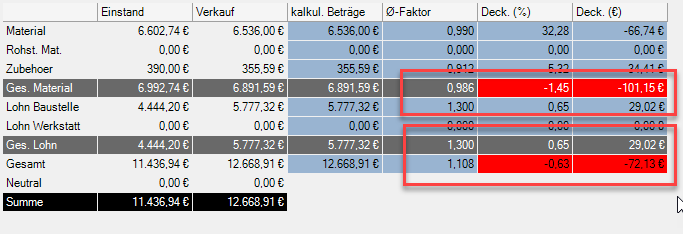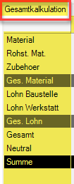| Summe | Summe aus Gesamt Material, Gesamt Lohn und Neutral. |