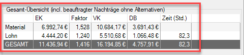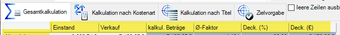 | kalkulierbare Beträge | Summe der Positionen mit dem Merker “kalkulierbar |
