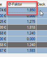 | Durchschnittlicher Faktor | Der Aufschlag über alle Positionen im Durchschnitt |