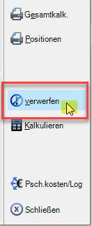 Wollen sie die Werte nicht in das Projekt übernehmen, können sie “verwerfen” und mit “Schließen” das Kalkulationsmodul verlassen.