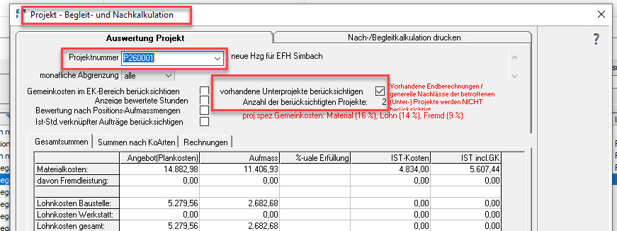 Übergreifende Nachkalkulation von Projekten